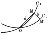 设两条曲线C1和C2有一共同点O,在C2上取一点M,从M到C1的距离设为h,以d表示M到O的距离(图7.17),如果