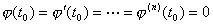 1° 设曲线C1的方程为F(x,y)=0,曲线C2的方程为x = x(t),y = y(t),并设在点t = t0(即O(x0,y0))处,则两条曲线C1与C2在点O构成n阶接触的充分必要条件是: