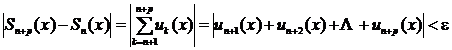 [ Cauchy criterion ] The necessary and sufficient condition for   series convergence is: for any ε > 0 , there is a positive integer N = N ( ε ), so that when n N , for all positive integers p , the following inequality holds: