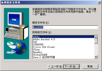 用鼠标单击“下一步”按钮,进入选择程序文件夹画面,如图2-3所示。