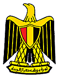 为一只金色的鹰,称萨拉丁雄鹰。金鹰昂首挺立、舒展双翼,象征胜利、勇敢和忠诚,它是埃及人民不畏烈日风暴、在高空自由飞翔的化身。鹰胸前为盾形的红、白、黑三色国旗图案,底部座基饰带上写着“阿拉伯埃及共和国”。