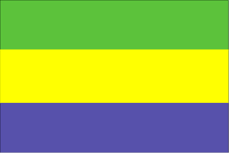 加蓬国旗呈长方形,长与宽之比为4:3。自上而下由绿、黄、蓝三个平行的长方形组成。加蓬号称“木材之国”、“绿金之国”。国旗中的绿色象征森林,黄色象征阳光,蓝色象征海洋。