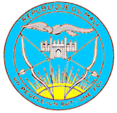 呈圆形。圆面为蓝色,中间是一座风格独特的城堡,其上为一只展翅的和平鸽,下方是光芒四射的太阳和两张引箭待发的弓。圆周上方为法文写的“马里共和国”;下方用法文写着格言“一个民族、一个目标、一个信念”。