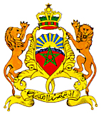即王徽。图案中间为由花冠组成的盾徽。盾面上有一颗绿色五角星,这是国旗的标志;五角星之上是一轮光芒四射的太阳,太阳前面的图案象征位于摩洛哥中北部、有天然水塔之称的阿特拉斯山。盾徽上端是一顶王冠,象征摩洛哥王国是君主立宪制;两侧各有一只狮子,象征力量;底部的绶带上用阿拉伯文写着“你助真主,真主助你”。