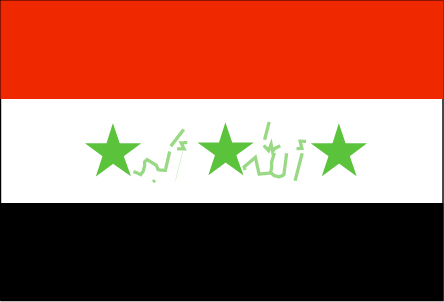 伊拉克国旗由自上而下红、白、黑三个相等的长方形组成,长与宽之比为3:2。白色居中部分有三颗等距排列的绿色五角星。三颗五角星之间用阿拉伯文书写着“真主至高无上”的字样。红、白、黑、绿四色分别代表穆罕默德后代的阿拔斯、倭马亚、法蒂玛和哈希姆四个王朝。红色象征勇猛和革命;白色象征宏大高尚与和平;绿色是伊斯兰的传统颜色,象征土地;黑色则象征对十字军东征的圣战的胜利。三颗五角星象征伊拉克阿拉伯复兴党的奋斗目标:“统一、自由、社会主义”。1963年采用此旗为国旗。旗上的“真主至高无上”是1993年后增添的。