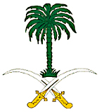 呈绿色。由两把交叉着的宝刀和一颗枣椰树组成。宝刀象征圣战和武力,象征捍卫宗教信仰和保卫祖国的决心和意志;枣椰树代表农业,象征沙漠中的绿洲。另外,沙特人民最喜爱枣椰树,并把它作为捍卫宗教信念的象征。
