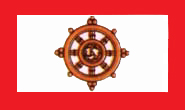 锡金国旗呈长方形,长与宽之比为5:3。四周镶有红色宽边的白地。白地中央绘有一佛教标志物之一的橙黄色法轮,红色宽边表示这个国家被高山所环绕,因锡金素有“山顶王国”之称。法轮是佛教的标志物,象征世间万物辗转相传,繁荣、进步。