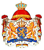 即奥伦治·拿骚王室的王徽。为斗篷式。顶端戴王冠的斗篷中有一盾徽,蓝色盾面上有一只头戴三叶状王冠的狮子,一爪握着银色罗马剑,一爪抓着一捆箭,象征团结就是力量。盾徽上面有一顶王冠,两侧各有一只狮子,下边的蓝色饰带上写着威廉大公的一句格言“坚持不懈”。