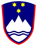 为盾徽。盾面为蓝色,上部有三枚黄色的六角星,下边是白、蓝相间的波纹,中间为三座白色山峰,象征该国最高峰——海拔2863米的特里格拉夫峰。