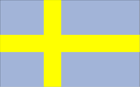 瑞典国旗呈长方形,长与宽之比为8:5。旗地为蓝色,黄色宽条十字偏向旗杆侧,把旗地分成四块蓝色长方形,靠旗杆一边的上下长方形面积相等,靠右边的上下长方形面积也相等。蓝、黄两色来自瑞典皇徽的颜色。历史上瑞典曾为丹麦所统治,所以国旗图案与丹麦国旗相似,只是长宽比例和颜色不同。1906年6月22日瑞典法律正式规定为瑞典王国的国旗。国旗与王旗颜色相同,但王旗带有国徽图案。
