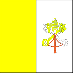 梵蒂冈国旗呈正方形,从左至右由金黄色和银白色两个垂直长方形组成。银白色长方形中央绘有教皇保罗六世的皇徽。传说基督交给12门徒之一彼得两把钥匙,一把是金黄色,另一把是银白色,故国旗选用这两种颜色。