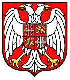 为盾徽。红色盾面上绘有一展翅的双头雄鹰,鹰胸前有一红色小盾。