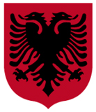 为盾徽。黑色双头鹰镶在深红色的盾面上,寓意同国旗。