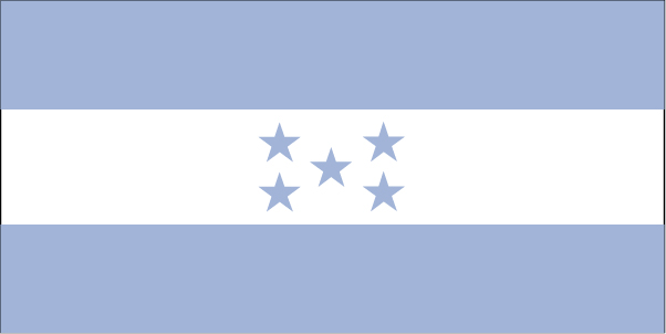 洪都拉斯国旗呈横长方形,长与宽之比为2:1。自上而下由蓝、白、蓝三条宽度相等的平行长方形组成。五颗蓝色五角星绘于白色长方形中央,中间为一颗,左右上下各为两颗。国旗颜色来自原中美洲联邦国旗的颜色。蓝色象征太平洋和加勒比海和太平洋,白色象征国家对和平的追求。五颗蓝色五角星是1866年增加的,代表中美洲五个国家将再次组成联邦的愿望。