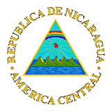 中心图案为三角形,三条黄边代表平等、真理和正义。三角形下部为海面上耸立的五座绿山,象征组成原中美洲联邦的五个成员国。被绿山隔开的蓝色,代表由中美洲地峡分开的太平洋和加勒比海。山顶为黄色,表示该地区多火山的高原地貌。绿山之上是“自由之竿”和“自由之帽”,还有一道象征希望的彩虹。环绕三角形图案的是一圈黄色的西班牙文字,为“中美洲,尼加拉瓜共和国”。
