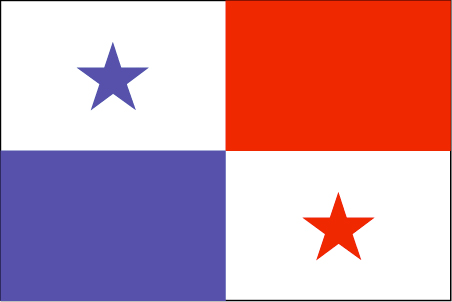 巴拿马国旗呈横长方形,长与宽之比为3:2。由四个长方形组成。旗地为白、红、蓝三色。靠旗杆上方为白色,白色中央绘有一颗蓝色五角星;下方为蓝色。旗的右边上方为红色,下方为白色,这白色中央绘的是一颗红色五角星。白色象征和平,红色代表原巴拿马的自由党,蓝色代表原巴拿马的保守党。红、蓝两色在国旗上的位置表示自由党和保守党联合起来为民族的利益而奋斗。旗地上的蓝、红两颗五角星分别象征人们的忠诚和力量。1903年11月3日巴拿马共和国成立时升起的就是这面国旗。