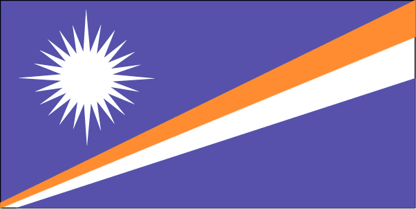 马绍尔群岛共和国的国旗为长方形,长与宽之比为19:10。自左下角向右上方斜伸出两道逐渐变宽的条带,上为橙色,下为白色;靠旗库左上角的大三角形旗面上绘有一轮白色太阳,太阳放射着24道光芒。象征这个国家的24个市政区域。橙、白两个三角形从旗面右边上方斜过旗面至旗库下方,橙、白、蓝三色构成的三角形与绘有太阳图案的三角形相等。此旗为总统夫人设计。