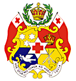 主体为由六个黄色花冠组成的盾形,盾面上有五组图案:正中是一颗白色六角星,其中有红十字;左上方为三颗白色六角星,象征组成该国的三大主要群岛;右上方是一顶王冠,象征汤加的王朝;左下方为一只衔着橄榄枝的白鸽,象征和平;右下方是三把剑,代表汤加历史上的三大王朝。盾形上端为由橄榄枝环抱的大王冠,象征汤加是一个君主立宪国家;两侧各有一面国旗,下端的绶带上写着“上帝和汤加才是我的遗产”。