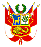 中心图案为盾徽。盾面左上方是一只南美骆马,为该国国兽,代表国家的动物资源,也是秘鲁民族的象征之一;右上方是一棵金鸡纳树,代表该国的植物资源;下半部为一只象征丰饶的羊角,代表该国的自然资源和矿藏。盾徽上端为一个绿枝叶环;两侧各有两面秘鲁国旗。
