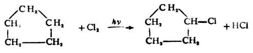 环戊烷及更高级的环烷烃与卤素不发生加成反应,而是进行自由基取代。例如: