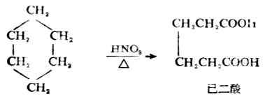 常温时,环丁烷、环戊烷及更高级的环烷烃与氢卤酸不起反应。 另外,若以强氧化剂在加热条件下与环烷烃作用时,则环断裂,生成二元羧酸。例如: