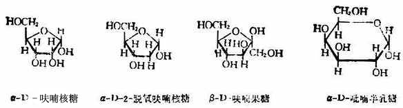 把具有呋喃环结构 的糖称为呋喃糖。 事实丰,形成吡喃环的各个原子,并不完全在一个平面上,而是以较稳定的椅型构象存在。因此,为了更合理地反映其结构,现在常用构象式来表示。α-D-和β-D-葡萄糖的构象式如下: