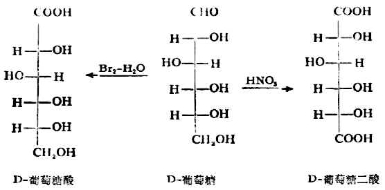 单糖易被碱性弱氧化剂氧化说明它们具有还原性,所以把它们叫做还原糖。 单糖在酸性条件下氧化时,由于氧化剂的强弱不同,单糖的氧化产物也不同。例如,葡萄糖被溴水氧化时,生成葡萄糖酸;而用强氧化剂硝酸氧化时,则生成葡萄糖二酸。