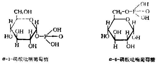 α-和β-D-吡喃葡萄混合液 β-D-甲基吡喃葡萄糖苷 α-D-甲基吡喃葡萄糖苷 苷由糖和非糖部分组成。非糖部分称为糖苷配基或苷元。糖和糖苷配基脱水后通过过“氧桥”连接,这种键称为苷键。由于单糖的环式结构有α-和β-两种构型,所以可生成α-和β-两种没构型的苷。天然苷多为β-构型。苷的名称是按其组成成分而命名的,并指出苷键和糖的构型。天然苷常按其来源而用俗名。 糖苷结构中已没有半缩醛羟基,在溶液中不能再转变成开链的醛式结构,所以糖工苷无还原性,也没有变旋现象。糖苷在中性或碱性环境中较稳定,但在酸性溶液中或在酶的作用下,则水解生成糖和非糖部分。 糖苷是中草药的有效成分之一,多为无色、无臭、有苦涩味的固体,但黄酮苷和蒽醌苷为黄色。 苷中含有糖部分,所以在水中有一定的溶解性。苷类都有旋光性,天然苷多为左旋体。 4.成酯作用 单糖分子中含多个羟基,这些羟基能与酸作用生成酯。人体内的葡萄糖在酶作用下生成葡萄糖磷酸酯,如1-磷酸吡喃葡萄糖和6-磷酸吡喃葡萄糖等。