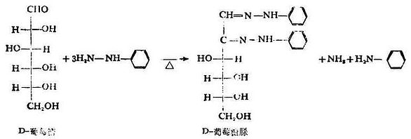 单糖的磷酸酯在生命过程中具有重要意义,它们是人体内许多代谢的中间产物。 5.成脎反应 单糖分子与三分子苯肼作用,生成的产物叫做糖脎。例如葡萄糖与进量苯肼作用,生成葡萄糖脎。