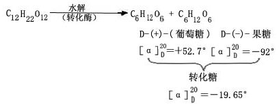 二、重要的二糖(一)蔗糖 蔗糖广泛地分布在各种植物中,甘蔗中约含26%,甜菜中含20%,故又称甜菜糖,各种植物的果实中几乎都含有蔗糖。平时食用的就是蔗糖。我国是世界上用甘蔗制糖最早的国家。 蔗糖为无色晶体,熔点186℃,易溶于水,水溶液的比旋亮度为+66.7°.蔗糖水解后得到等分子的D-葡萄糖和D-果糖的混合物,其比旋亮度为-19.65°,与水解前的旋光方向相反,因而把蔗糖的水解过程称为转化,水解后的混合液称为转化糖。促使蔗糖水解的酶称为转化酶。