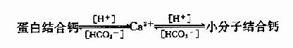 血浆中发挥生理作用的主要为游离Ca2+,而血浆中Ca2+一蛋白结合钙和小分子结合钙之间呈动态平衡关系。此平衡受血浆PH影响,血液偏酸时,游离Ca2+浓度升高;相反,血液偏碱时,蛋白结合钙增多,游离Ca2+浓度下降。因此,临床上碱中毒时常伴有抽搐现象,与低血钙有关。